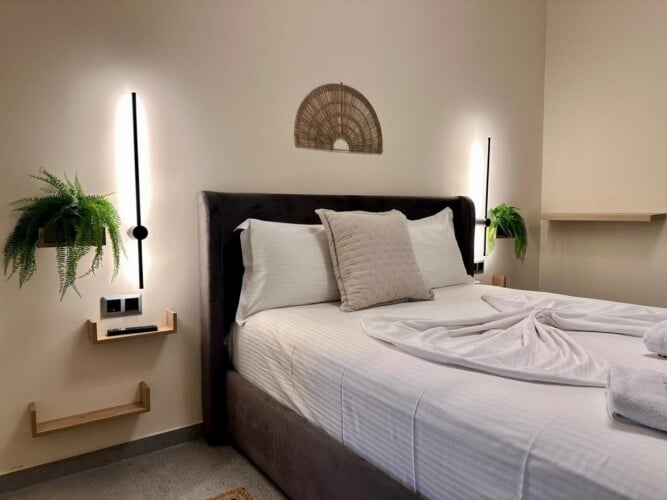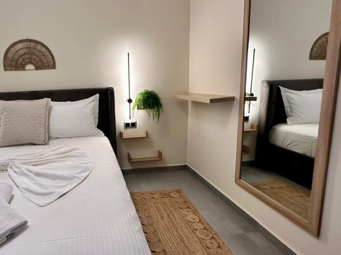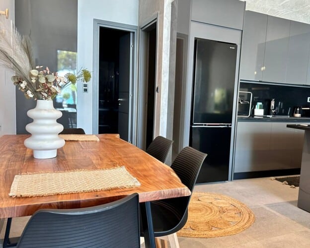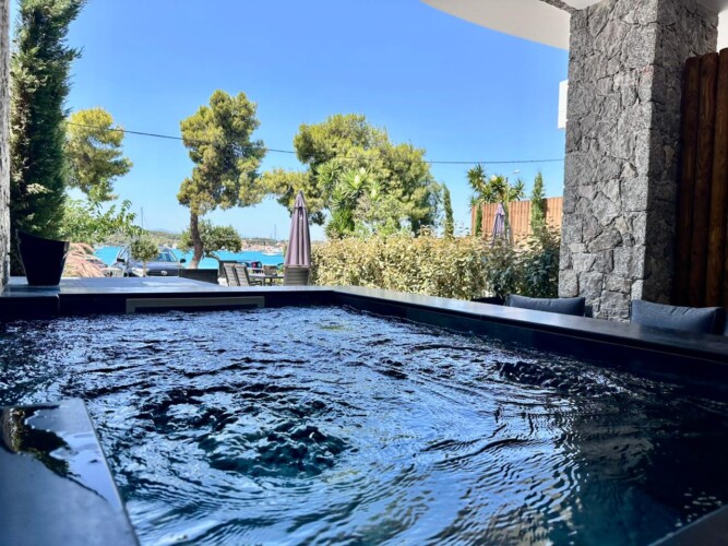 “Angelica” is a luxurious and distinctive apartment situated in the charming town of Porto Heli. This independent ground-floor unit features a fully equipped kitchen, a living room with a Smart TV, a dining area, a bedroom with a queen-size bed, a bathroom, and a terrace complete with a small pool. The terrace is also furnished with outdoor seating, offering a perfect spot for summer relaxation. The apartment offers stunning moments of natural beauty, particularly during the breathtaking sunsets the area is known for. A standout feature of the property is its small pool on the terrace, just a few steps from Porto Heli’s beautiful beach.
