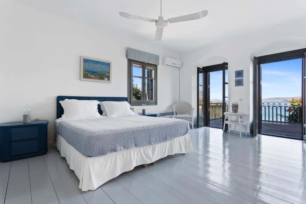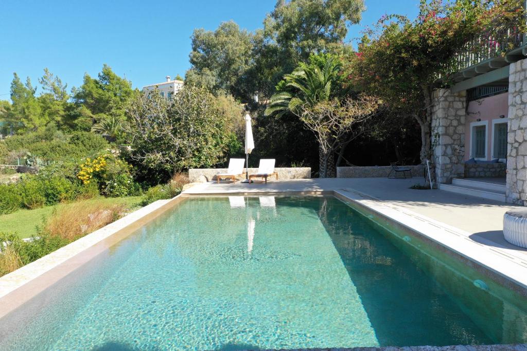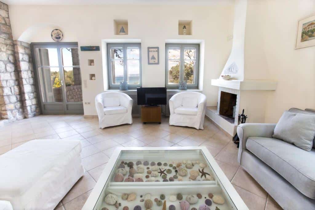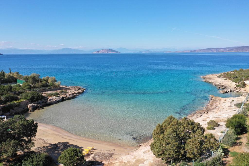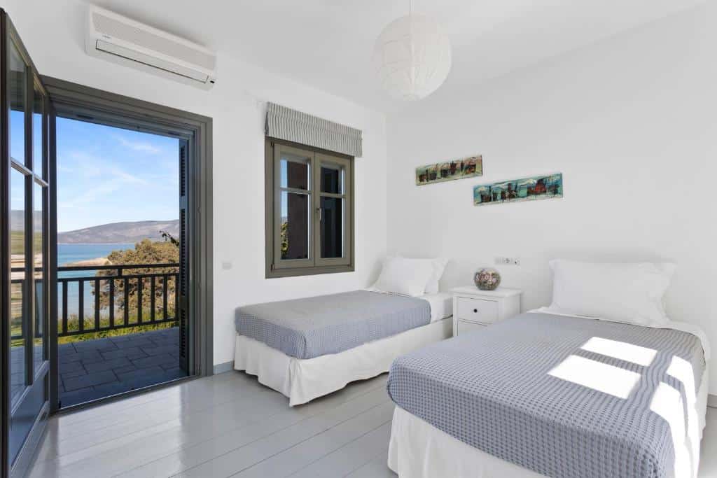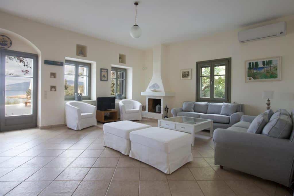 Featuring air-conditioned accommodation with a private pool, Powder Blue is located in Koilás. This beachfront property offers access to a patio, private parking, and WiFi. The spacious villa is equipped with 7 bedrooms, 5 bathrooms, bed linen, towels, a flat-screen TV with satellite channels, a dining area, a fully equipped kitchen, and a terrace with sea views. Guests can take in the ambience of the surroundings from an outdoor dining area or keep themselves warm by the fireplace on colder days. Lepitsa Beach is 2.9 km from the accommodation, while Katafyki Gorge is 14 km away. The nearest airport is Eleftherios Venizelos, 192 km from the villa.
