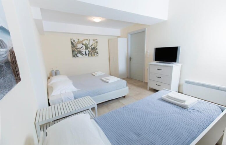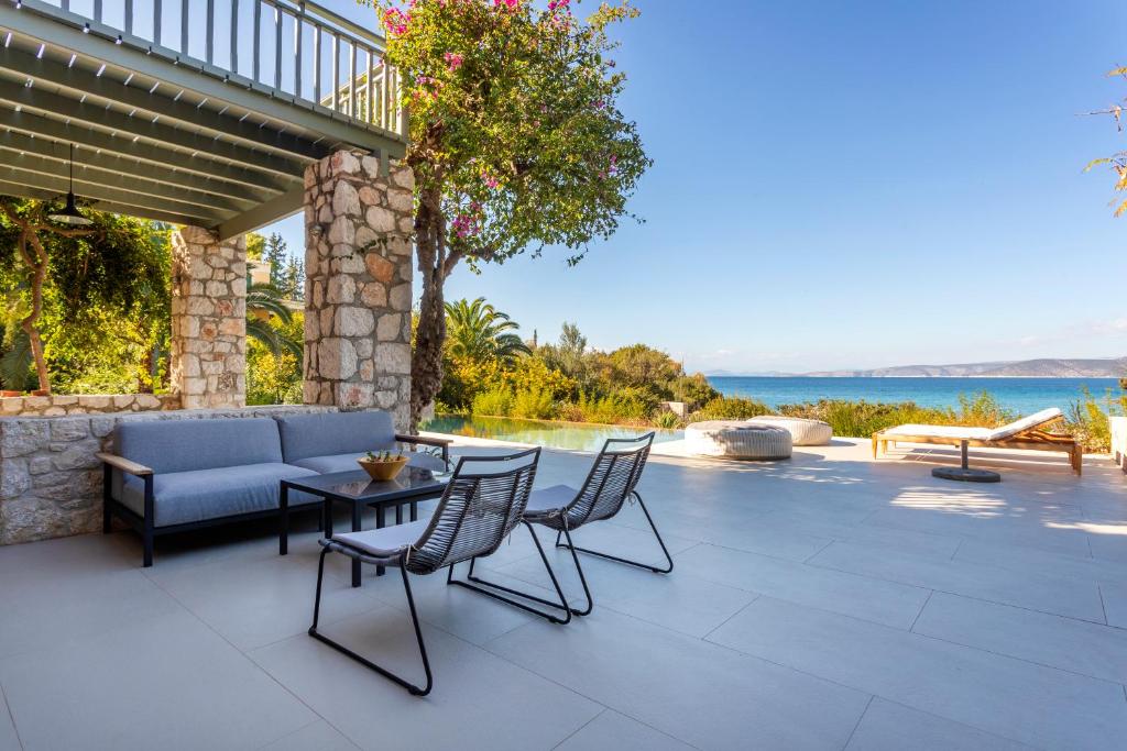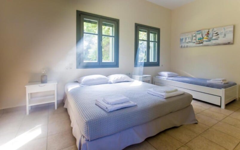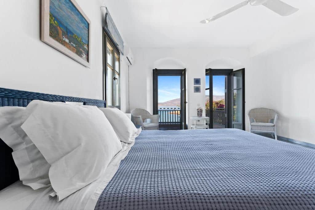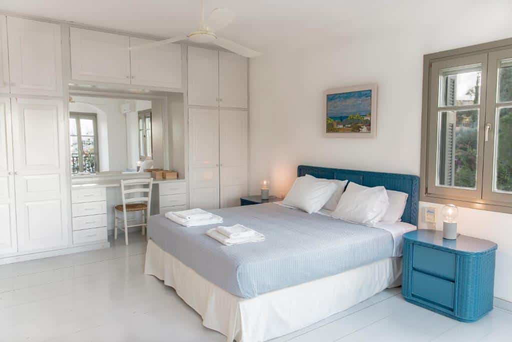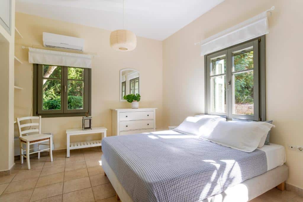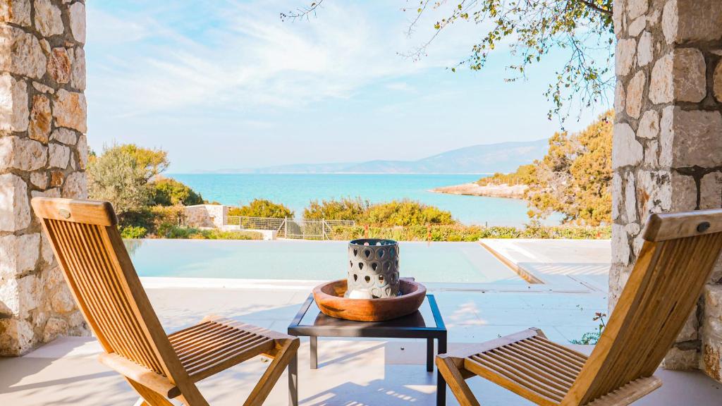 Featuring air-conditioned accommodation with a private pool, Powder Blue is located in Koilás. This beachfront property offers access to a patio, private parking, and WiFi. The spacious villa is equipped with 7 bedrooms, 5 bathrooms, bed linen, towels, a flat-screen TV with satellite channels, a dining area, a fully equipped kitchen, and a terrace with sea views. Guests can take in the ambience of the surroundings from an outdoor dining area or keep themselves warm by the fireplace on colder days. Lepitsa Beach is 2.9 km from the accommodation, while Katafyki Gorge is 14 km away. The nearest airport is Eleftherios Venizelos, 192 km from the villa.